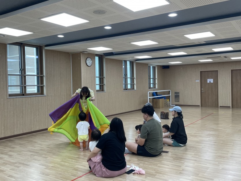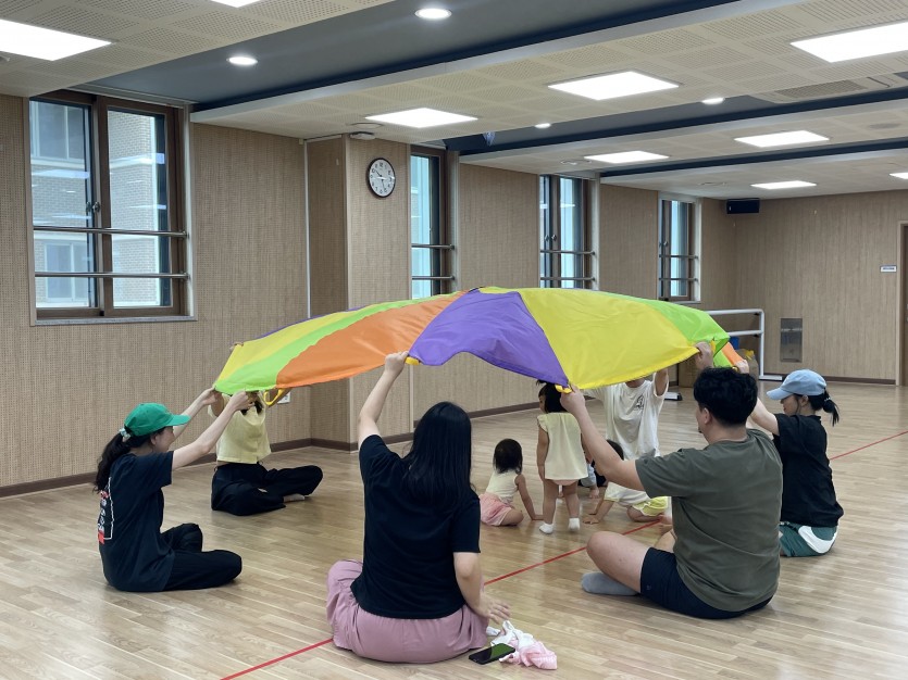 클래식 음악에 맞추어 낙하산의 펄럭임과 바람을 느끼며 엄마아빠와 친구들과 교감 쌓기도 했어요