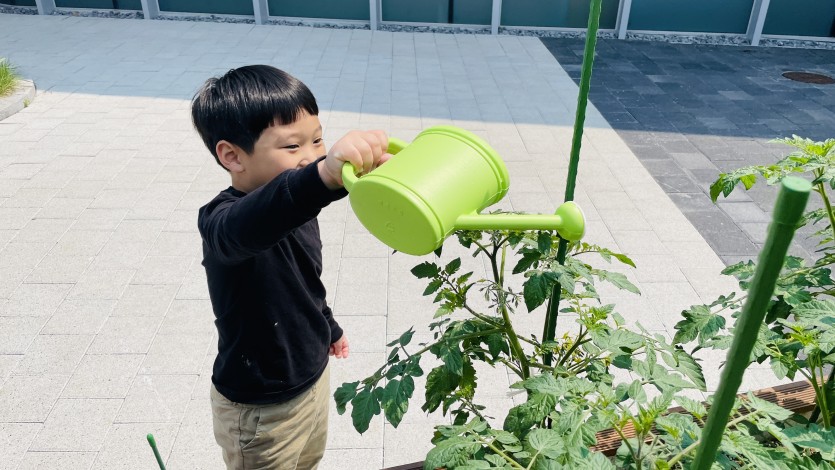 정성껏 물을 주고 바라보는 동안, 텃밭 속 작물들도 아이들의