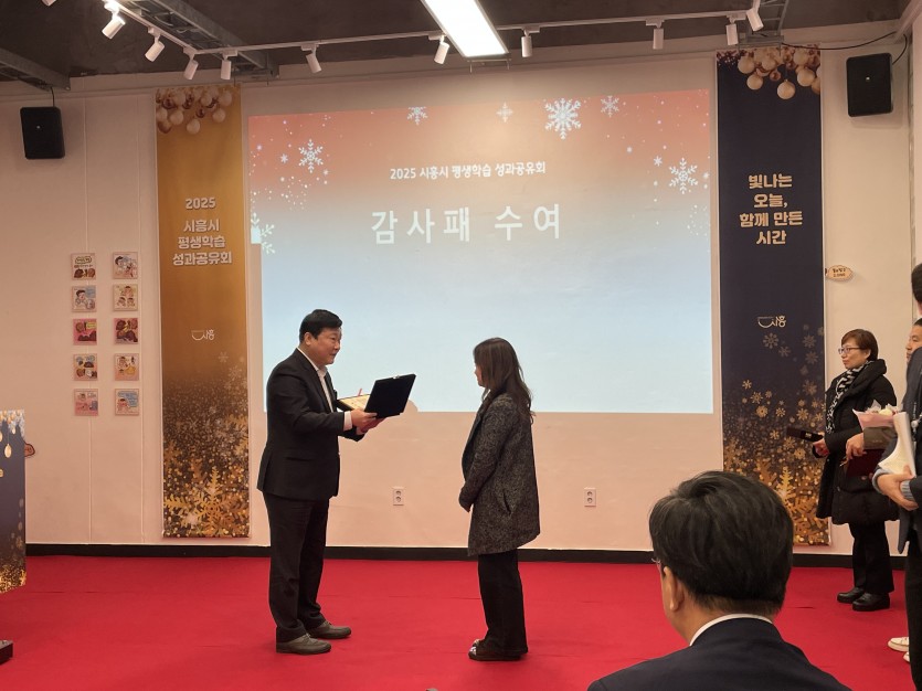 2025년 시흥시 평생학습네트워크(남부권) 대표 기관의 역할을 수행하며 빛나는 감사패를 수여 받았답니다 wink