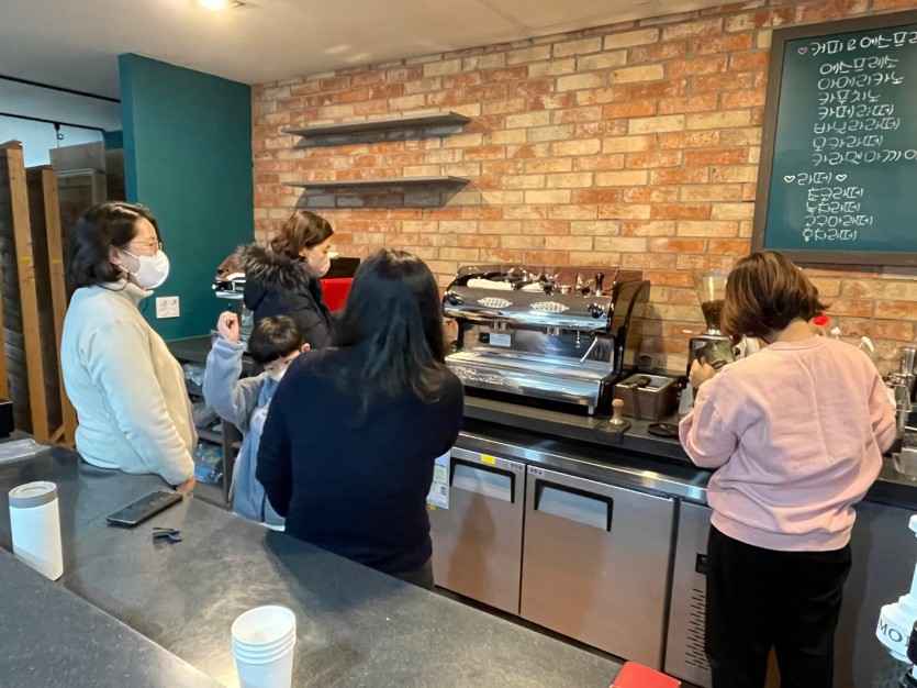 바리스타 평생교육프로그램을 통해 동아리가 결성되어 커피에 대한 이론과 실습 활동을 이어가는 '커피향기' 동아리