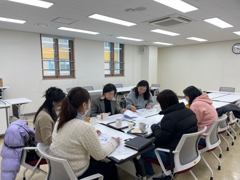 캘리그라피 평생교육프로그램을 통해 동아리가 결성되어 다양한 캘리 작품에 도전하는 '캘리캐리' 동아리