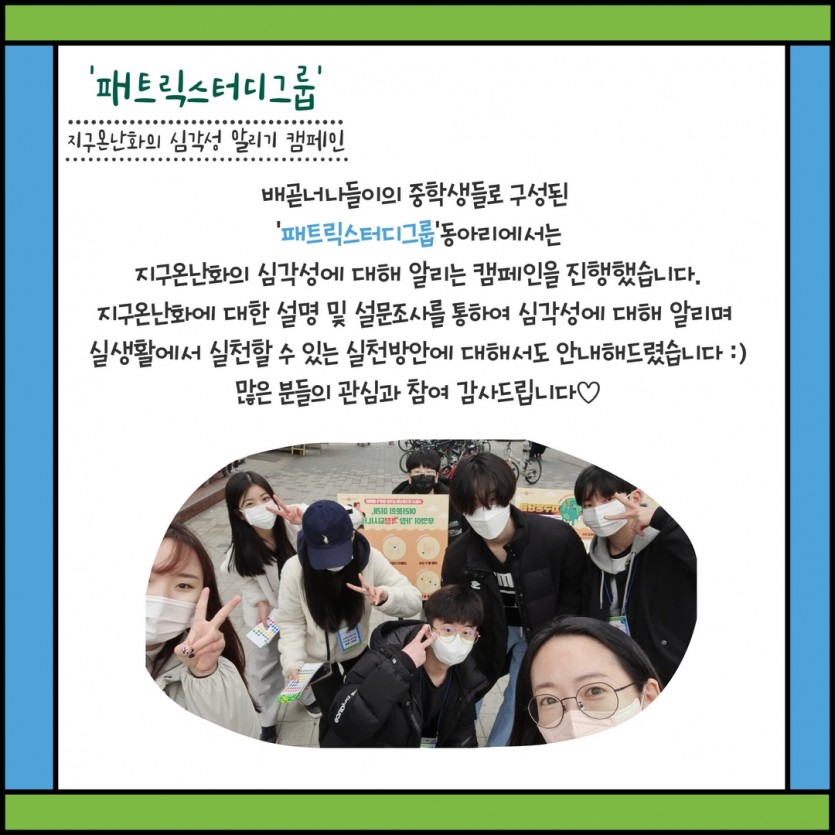 패트릭스터디 그룹 - 지구 온난화의 심각성 알리기 캠페인 활동