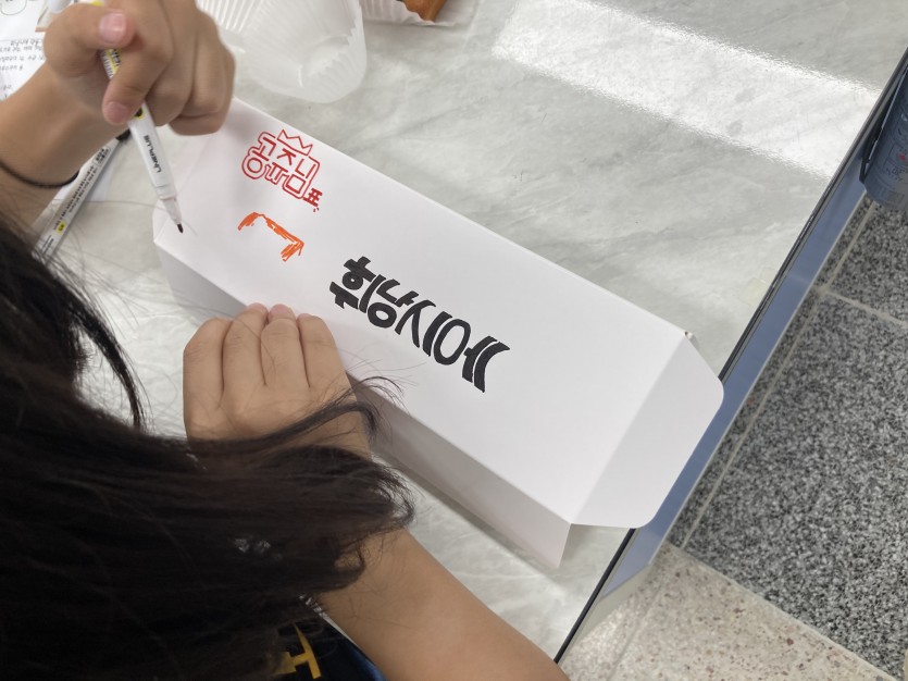 휘낭시에가 구워지는 동안 포장상자도 예쁘게 꾸며보았는데요!